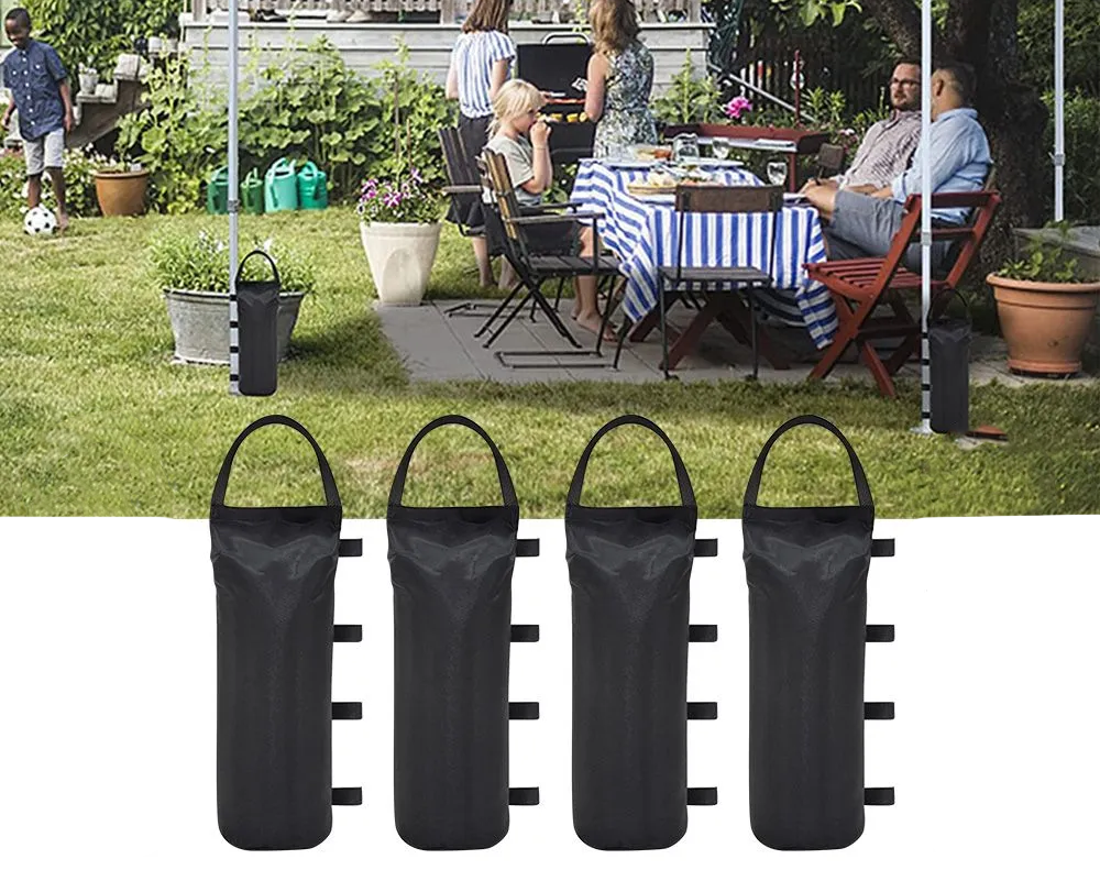 This Sand Weight Bags for Canopy set includes 4 sand weight bags designed to effortlessly anchor your pop up canopy or outdoor gazebo