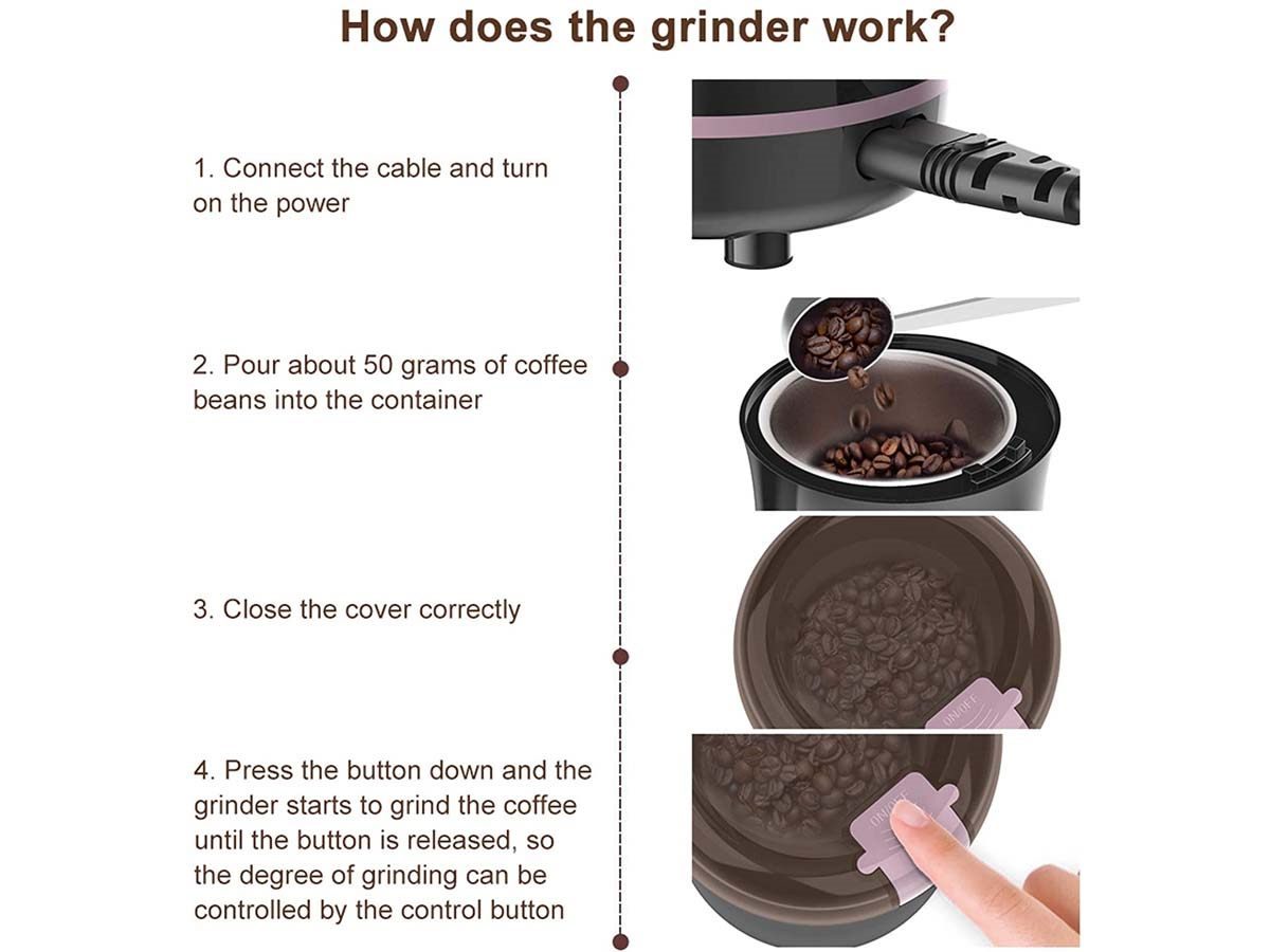 Multifunctional Electric Grinder – Coffee Bean Grinder – Spice Grinder – Herb Grinder – Nut Grinder – Grain Grinder – Stainless Steel Blades & Bowl – 150W – 50g Capacity – Fast Grinding – Easy to Use – Black