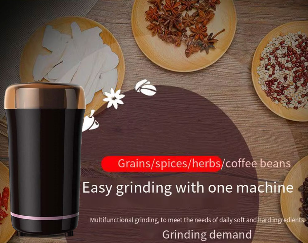 Grind coffee beans, spices, nuts, and herbs effortlessly with this 150W Electric Grinder featuring stainless steel blades and 5000 RPM speed. Adjust grind texture (coarse to super-fine) in seconds using the 3-step press system and transparent safety cover. Compact, durable, and ideal for kitchens, it includes a 50g capacity bowl and safety buckle for mess-free operation.