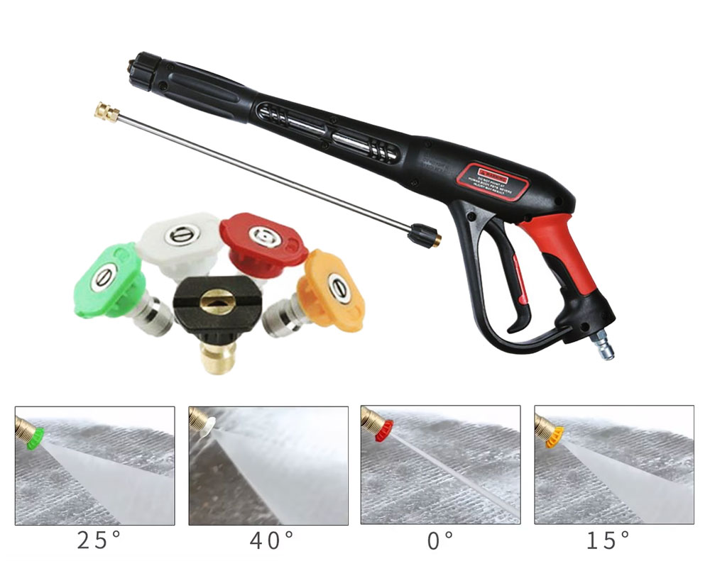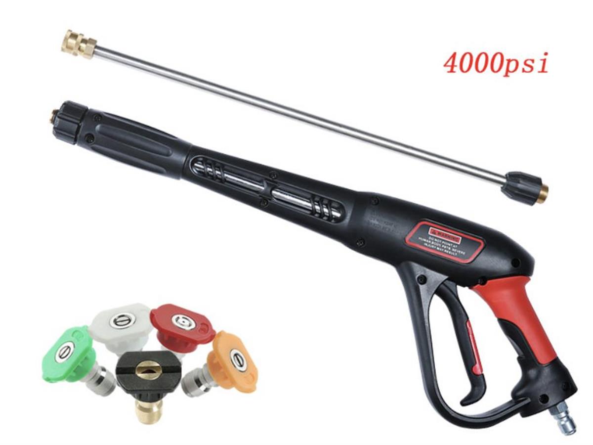 High Pressure Washer Spray Gun with 5 Nozzles – 4000 PSI Water Blaster Lance Gun, 97cm Length, Ceramic Core Valve, 3/8" QC Quick Connect for High Pressure Cleaners
