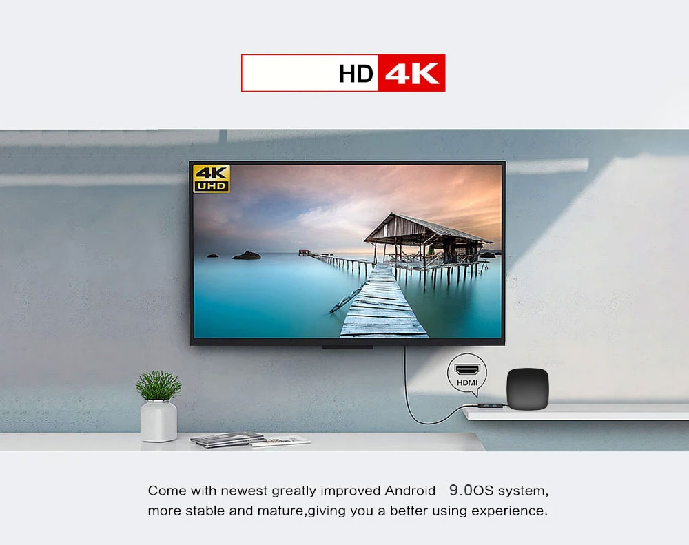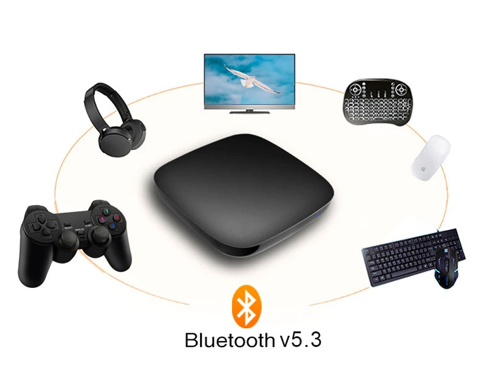 Transform your traditional TV or monitor into a smart entertainment hub with this 5G 4K Android TV Box. Running on the latest, more stable Android OS, it delivers stunning 4K HDR visuals and smooth performance for videos, music, and games. It features 2GB DDR3 RAM and 16GB eMMC ROM for ample storage and performance. Connectivity is robust with built-in 2.4G/5G Dual-Band WiFi, Bluetooth 5.3, and an Ethernet port. The box supports the latest HEVC (H.265) decoding for efficient high-quality streaming.